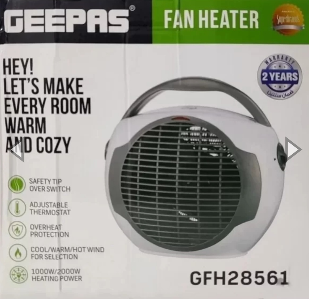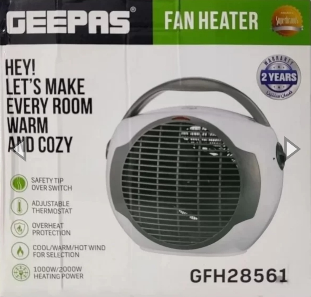 بخاری برقی فن هیتر Geepas- GFH28561| فن با کارایی بالا با ۳ حالت، ترموستات قابل تنظیم و گرمایش فوری محافظت در برابر گرمای بیش از حد، ایده آل برای گرم کردن خانه ها، دفاتر، فضاهای زندگی کوچک و غیره