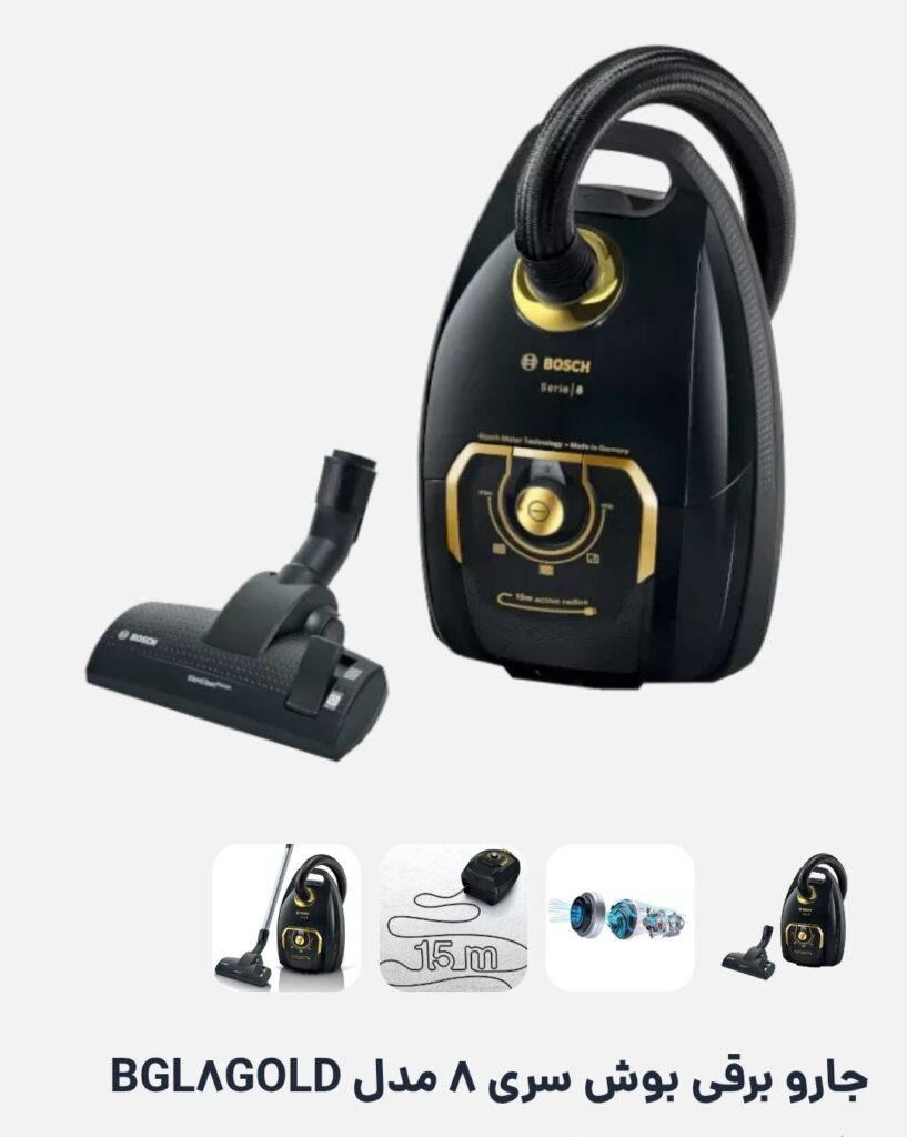 جاروبرقی بوش سری 8 ساخت کشور آلمان بوده که در ساخت و طراحی آن از بهترین و بروزترین متریال حال حاضر در دنیا بهره برده اند. توان مصرفی این دستگاه 2200W است و مجهز به تکنولوژی سوپر سایلنت(کمترین صدای ممکن)میباشد.