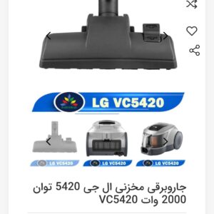 جاروبرقی ال جی VC5420NNTS یا VC5420NNT رنگ نقره ای، یکی دیگر از جاروبرقی های 2021 ال جی می باشد. ممکن است این محصول به اشتباه در بازار به جاروبرقی ال جی VC5420 یا 5420 معروف باشد، اما در واقع از سری VC5420 ال جی است و مدل دقیق محصول به حساب نمی آید. جاروبرقی VC5420NNT یکی از قدرتمند ترین جاروبرقی های ال جی در سال 2021 می باشد. این جاروبرقی در عین کوچک بودن، قدرت بسیار خوب و قیمت مناسبی دارد. شعاع عملکرد این جاروبرقی تقریبا 8.3 متر می باشد و می توان گفت اگر خانه کوچکی دارید، این محصول گزینه مناسبی برای شما است. محصول پیش روی شما از جمله جاروبرقی های بدون کیسه است و در واقع به یک مخزن 1.3 لیتری مجهز است. جاروبرقی مخزن دار ال جی VC5420NNTS به تکنولوژی Ellipse Cyclone مجهز است که باعث جداسازی ذرات بزرگ و کوچک از یکدیگر می شود. این فناوری همچنین باعث می شود بتوانید از حداکثر قدرت مکش جاروبرقی در مدت زمان طولانی تری بهره ببرید. ال جی از سیستم Easy to Clean در این محصول استفاده کرده و در واقع مخزن آن را به گونه ای طراحی نموده که به راحتی قابل تخلیه و حتی شستشو باشد. لازم به ذکر است که جاروبرقی پیش روی شما برای جمع آوری آشغال های خشک طراحی شده است و جمع آوری مایعات با آن ممکن است به موتور آسیب برساند. در صورتی که این موضوع برای شما مهم است، پیشنهاد می کنیم به سراغ جاروبرقی های دیگر بروید. جارو برقی ال جی VC5420 به یک موتور قدرتمند با توان 2000 وات مجهز است. کیفیت ساخت موتور این جاروبرقی 2000 وات ال جی بسیار خوب است و عملکرد بدون نقص آن توسط الجی تا 10 سال تضمین شده تا از این لحاظ خیال شما راحت باشد. محصول فوق دارای قدرت مکش 380 وات است که برای یک جاروبرقی ارزان قیمت و کوچک بسیار مناسب می باشد. متاسفانه باید گفت این محصول امکان تنظیم قدرت مکش را ندارد و شما تنها می توانید از طریق دکمه مخصوصی که روی بدنه وجود دارد، جاروبرقی را خاموش یا روشن کنید. ال جی یک فیلتر ایمنی موتور (Motor Safety Filter) در زیر مخزن جاروبرقی قرار داده که از ورود ذرات گرد و غبار به داخل موتور جلوگیری می کنند و باعث افزایش عمر موتور می شود. این فیلتر قابل شستشو است. البته به این نکته توجه کنید که قبل از کار با جاروبرقی، فیلتر ذکر شده کاملا خشک باشد. علاوه بر این فیلتر، یک فیلتر دیگر از نوع EPA 11 در قسمت هوای خروجی موتور وجود دارد که به راحتی قابل نظافت است. البته برخی از سایت ها ممکن است فیلتر این جاروبرقی را HEPA 11 اعلام کنند که اشتباه می باشد. جاروبرقی ال جی VC 5420 NNT ابعاد کوچکی دارد و برای نگهداری آن به فضای زیادی نیاز ندارید. ال جی محصول فوق را به Tube Park System یا محل مخصوص نگهداری لوله مجهز کرده است و شما می توانید بدون جدا کردن لوله از بدنه، آن را روی جاروبرقی قرار دهید تا فضای کمتری اشغال کرده و نگهداری آن نیز راحت تر باشد. این جاروبرقی وزن نسبتا کمی دارد و شما می توانید از دستگیره ای که روی مخزن آن قرار دارد برای حمل و نقل جاروبرقی نیز استفاده نمایید. جاروبرقی پیش روی شما دارای 2 چرخ بزرگ با روکش لاستیکی است و علاوه بر جابجایی آسان، روی سطوح سخت خط و خش نمی اندازد. در زیر این محصول یک چرخ کوچک نیز وجود دارد که به جابجایی آسان تر جاروبرقی کمک می کند. روی بدنه این جاروبرقی دکمه خاموش و روشن کردن آن قرار دارد و متاسفانه همانطور که گفته شد امکان تنظیم قدرت مکش این محصول وجود ندارد. این محصول دارای قابلیت سیم جمع کن خودکار (Automatic Cord Rewind) است و شما با نگه داشتن دکمه مخصوص آن می توانید سیم را به داخل جاروبرقی جمع کنید. جاروبرقی فوق دارای دسته معمولی و همچنین یک لوله استیل از نوع تلسکوپی است. شما به راحتی می توانید طول لوله را با توجه به نیاز خود تنظیم نمایید. به همراه این جاروبرقی نازل اصلی از نوع 2 حالته عرضه می شود که می توانید از آن برای نظافت فرش، موکت و یا سطوح صاف استفاده نمایید. همچنین نازل گرد و خاک و همچنین نازل مخصوص درز ها و شکاف ها به همراه جاروبرقی فوق ارائه می شوند که بسته به نیاز خود می توانید از آن ها استفاده کنی
