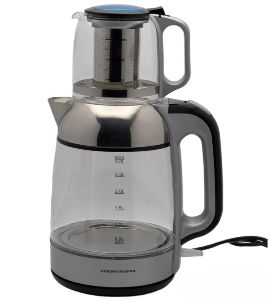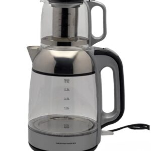 چایساز Vogati VE-217 از سری چایسازهای مدرن و خوشساخت برند وگاتی است که با هدف راحتی و سرعت در تهیهی چای طراحی شده است.این مدل دارای کتری استیل مقاوم با ظرفیت ۱.۸ لیتر و قوری شیشهای (پیرکس) با ظرفیت ۱ لیتر است که هر دو با طراحی ارگونومیک و زیبا ساخته شدهاند.توان حرارتی بالا باعث میشود آب در مدت کوتاهی به جوش برسد، و پس از آن، دستگاه به حالت گرمنگهدار خودکار تغییر وضعیت میدهد تا چای همیشه داغ و تازه باقی بماند.پایهی چرخان ۳۶۰ درجه کار با دستگاه را آسانتر کرده و برای استفاده توسط افراد راستدست و چپدست ایدهآل است.از دیگر ویژگیهای مهم این چایساز میتوان به فیلتر استیل ضدزنگ قوری، سیستم ایمنی قطع خودکار در زمان اتمام آب، دستههای عایق حرارت و چراغ نشانگر وضعیت اشاره کرد.چایساز وگاتی VE-217 نهتنها عملکردی سریع و قدرتمند دارد، بلکه با طراحی ظریف و مدرن خود جلوهای خاص به آشپزخانهی شما میدهد.